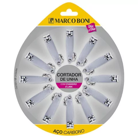Cartela com 12 Cortadores de Unha Em Aço Carbono - Marco Boni