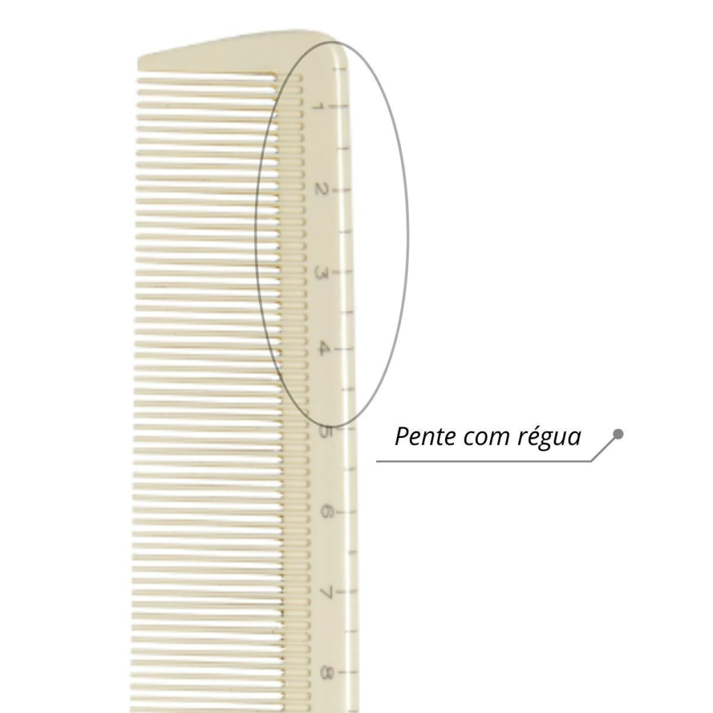 Transforme seus cortes com o Pente Profissional Com Régua Marco Boni, a ferramenta indispensável para cabeleireiros que valorizam a precisão e a qualidade em seus serviços.