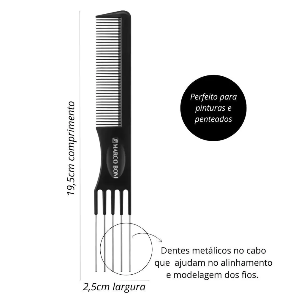 • Dentes metálicos no cabo ajudam no alinhamento e modelagem dos fios.